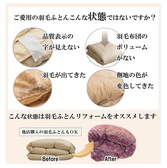 捨てられない大切な羽毛ふとんを、リフォームでよみがえらせてみませんか?