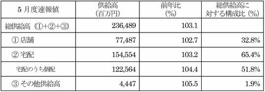 〇5月度の総供給高は、103.1%で店舗、宅配ともに前年超えでした。