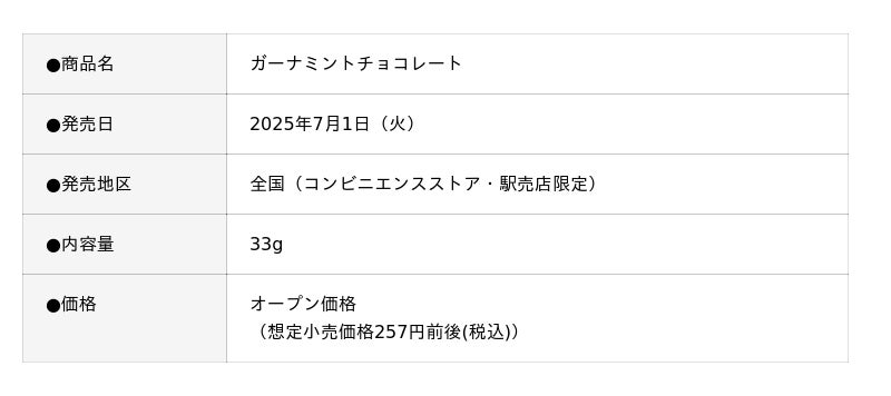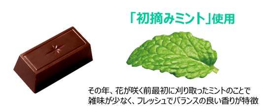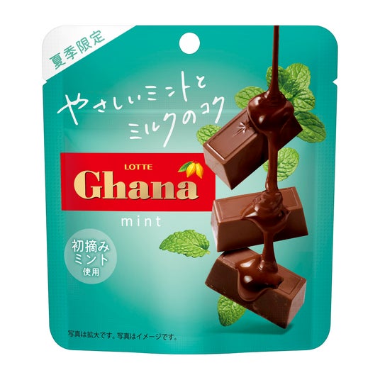 - 口どけなめらかなガーナミルクにフレッシュな香りの初摘みミントを配合した、ミントチョコレートです。