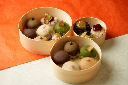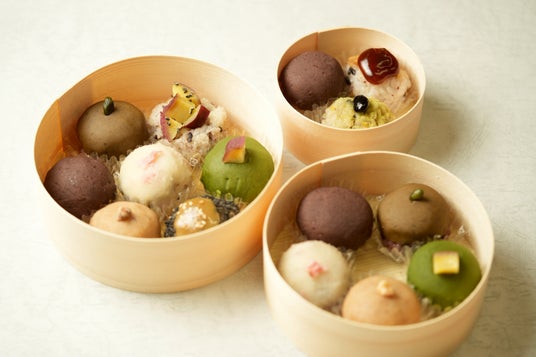 おはぎ・おにぎり共に常時8種類と日替りでご用意する商品は、秋田県産あきたこまちを使用。玄米を静岡県内で精米し、精米したての新鮮な状態で炊き上げて使用しています。18歳から74歳といった幅広い年齢層の従業員による発案を元に、浜松の人気洋菓子店「カヌレと焼き菓子の店 コムモア」(静岡県浜松市中央区)店主桃子さんと共同で商品開発とお店作りをいたしました。昔ながらの良さは残しつつ、新しい発想や洋菓子から着想を得たデザインなど、既成概念にとらわれないおはぎ・おにぎりとの出会いをお楽しみいただけます。