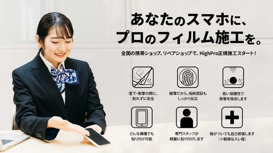 「HighProカッティングサービス」は、スマートフォン、タブレット、スマートウォッチなどの保護フィルムを、店舗でお客様に合わせてわずか30秒で自動カット提供できる革新的なサービスです。