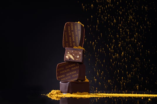 「INSOLITE(アンソリット)」は、M.O.F.(フランス国家最優秀職人章)ショコラティエ部門の称号を持ち、ブランドのシェフ・パティシエ・ショコラティエであるニコラ・クロワゾーの、好奇心という名のキャビネットに宿る驚きと発見から誕生した異色のコレクションです。そのコレクション初となる「アンソリット カレー」は、アーモンドとヘーゼルナッツがベースのプラリネに、インドカレーのスパイシーでまろやかなあじわいと、わずかに刺激のある香りをまとわせた一粒。カカオバターとキャラメリゼされたナッツにスパイスを直接練り込むことで、インドカレースパイスの華やかな果実味が弾け、ナッツのカリカリした食感と共に絶妙なバランスをもたらします。
