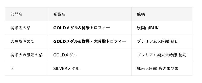 この成果は、日本酒業界でも珍しいものであり、浅間酒造の蔵人たちの卓越した技術と情熱が、世界で高く評価された証しでもあります。