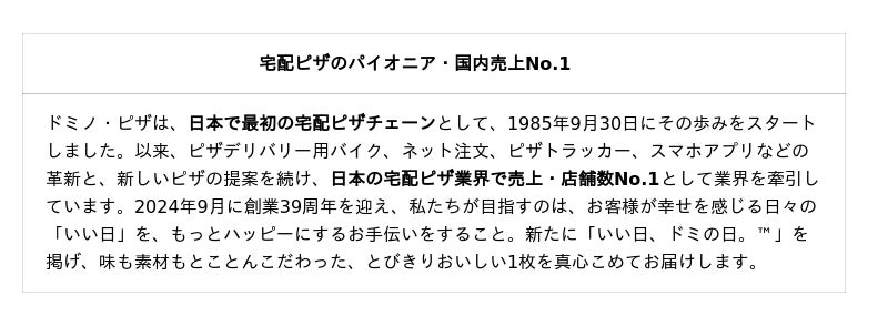 ※「キングオブピザ」は、ドミノ・ピザで現在販売中の商品ラインナップにおいて、直径・面積が最大であることを示しております。