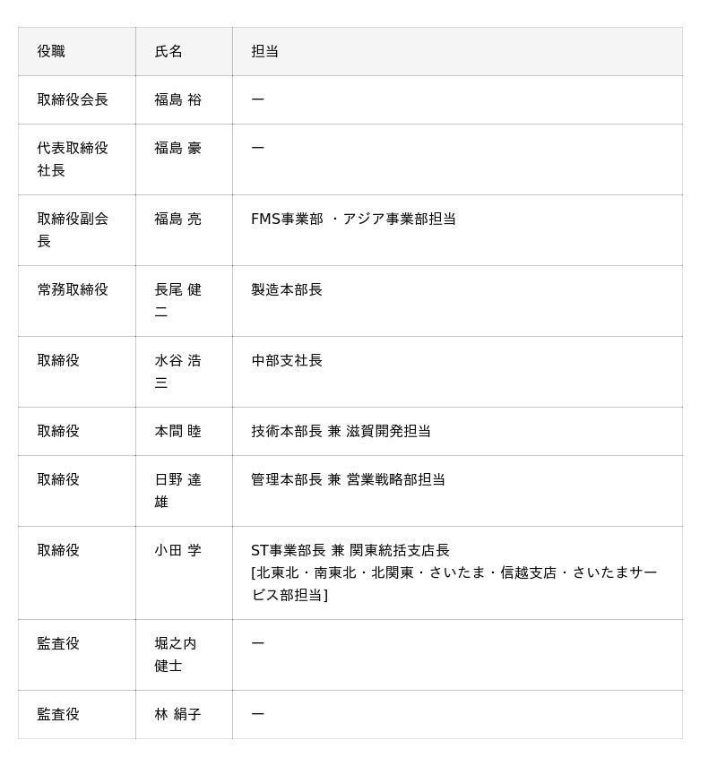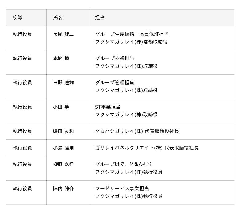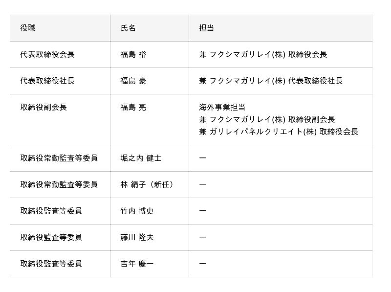 フクシマガリレイ株式会社の役員の一覧(2025年6月26日現在)