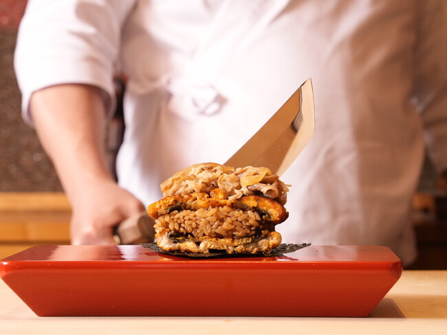 照寿司監修のうなぎと国産特上海苔と松屋牛めしを使って、UNAGYUバーガーを作成するKIT