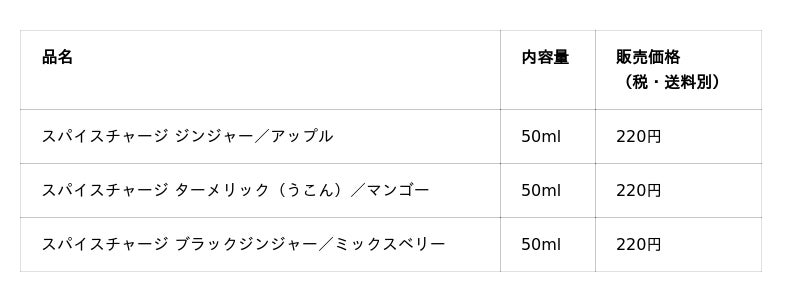 ジャー/アップル」「スパイスチャージ ターメリック(うこん)/マンゴー」「スパイスチャージ ブラックジンジャー/ミックスベリー」を新発売します。