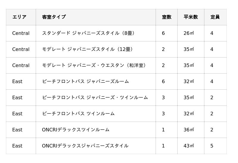 客室数は全24室。すべての客室はオーシャンビュー仕様となっており、窓を開けると唐津湾の壮大な景色が広がります。ビーチフロントのビューバスがあるEastエリアの客室に加え、4階のONCRIデラックスルーム(和室・洋室)は、広々としたテラスからの格別な眺望を誇り、心からくつろげる空間をご提供します。