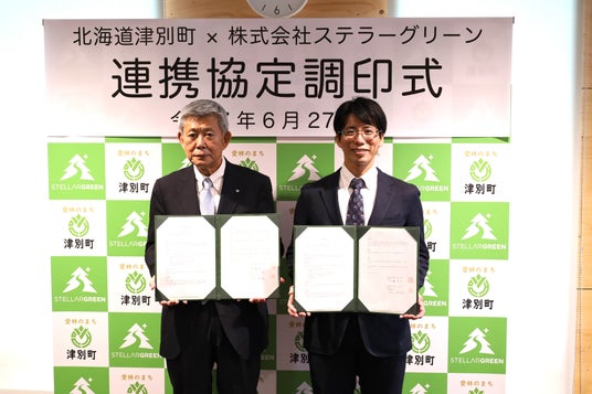北海道津別町(町長:佐藤 多一、以下「津別町」)と森林カーボンクレジット創出の支援事業を展開する株式会社ステラーグリーン(本社:東京都中央区、代表取締役社長 兼 CEO:中村 彰徳、以下「ステラーグリーン」)は、2025年6月27日(金)に「カーボンニュートラルの実現に向けた連携協定」を締結しました。