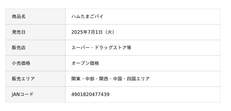 敷島製パン株式会社(Pasco)は、パイシリーズの新商品として「ハムたまごパイ」を2025年7月1日(火)から関東、中部、関西、中国、四国エリアにて発売します。