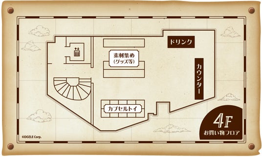 4F お買い物フロアでは、オリジナルグッズやハンドメイドパーツの購入、カプセルトイ、フォトスポットをお楽しみいただけます。