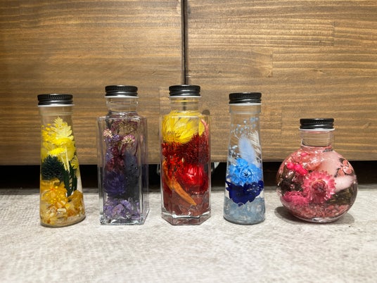 お好きな天然石とお花のエレメントを選んで作る『エレメンタリウム』のワークショップが体験できます。