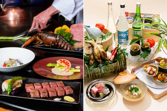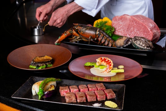 和牛や新鮮な魚介などの素材の旨味を堪能する鉄板焼コースや、月替わりで旬を味わう会席料理と涼やかな夏酒