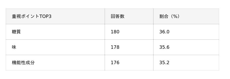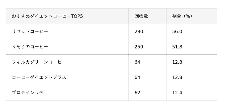 今回の調査で、ダイエット目的で飲用されるコーヒーの人気ランキングTOP5を発表。重視されるポイントとして「糖質」「味」「機能性成分」が挙げられました。