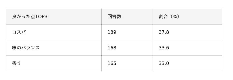 良かったと感じた点TOP3