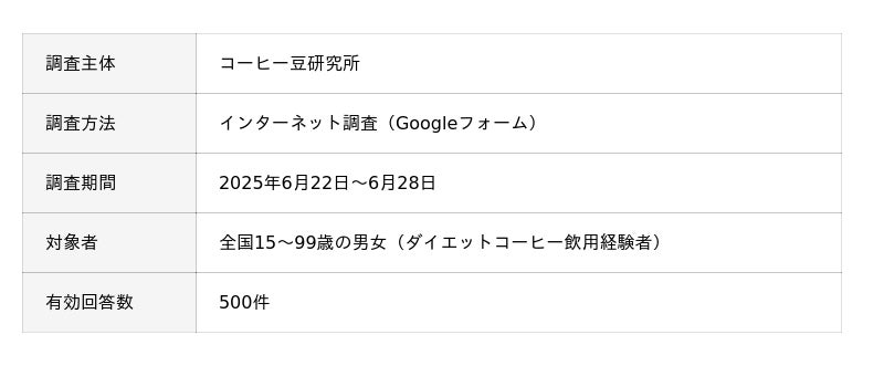近年、健康志向の高まりとともに「ダイエットサポート飲料」としてのコーヒーが注目されています。しかし商品数が多いため、実際に効果を感じられる商品選びに迷う消費者も少なくありません。コーヒー豆研究所では、この状況を踏まえて消費者が本当に満足できるダイエットコーヒーを明らかにすることを目的に、今回の調査を実施しました。