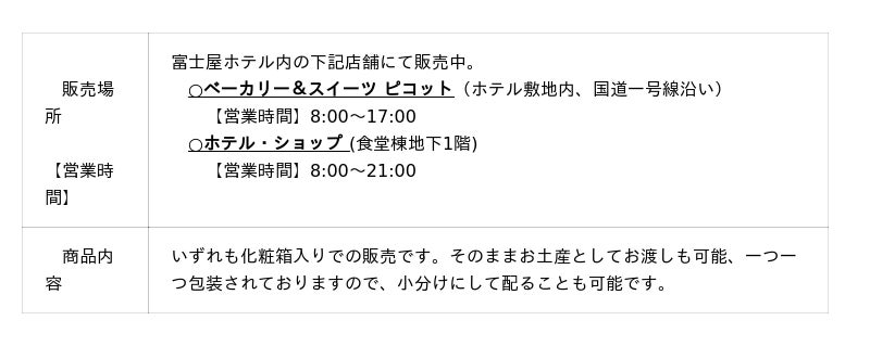 国際興業グループの富士屋ホテル株式会社(本社/神奈川県足柄下郡箱根町宮ノ下359/代表取締役 社長 安藤 昭)では富士屋ホテル(神奈川県足柄下郡箱根町宮ノ下359/取締役 総支配人 飯田 慶)のベーカリー&スイーツ ピコットとホテル・ショップにて、箱根エッグタルトとクラシックカレーパン5個入りBOXを販売中。
