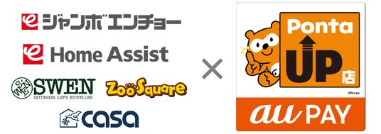 このたび、株式会社エンチョーが静岡県・愛知県を中心に展開する、ホームセンター「ジャンボエンチョー」、大型ホームセンター「Home Assist」、アウトドアショップ「SWEN」、ペット専門店「Zoo Square」、ホームファッション専門店「casa」がau PAY Pontaアップ店の加盟店に加わります。お買い物の際、au PAY(コード支払い)でお支払いするだけで、これまでの2倍のPontaポイントがたまるようになります。