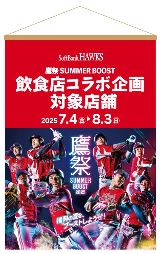 福岡ソフトバンクホークス株式会社(本社:福岡県福岡市 代表取締役社長 CEO:後藤芳光)は、福岡市などの245 店舗の飲食店で、7月4日(金)から8月3日(日)の約1ヶ月間「鷹祭 SUMMER BOOST飲食店コラボ企画」を初めて開催することをお知らせします。