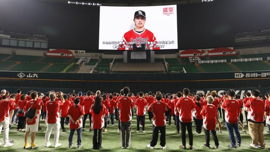 6月30日(月)みずほPayPayドームのグラウンドにて、本企画に参加いただく飲食店関係者208名にご参加いただき決起集会を行いました。ビジョンで周東佑京選手会長による飲食店の皆さまへ感謝を伝えるメッセージの放映や、参加者による記念撮影などを行いました。