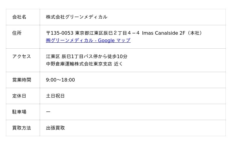 グリーンメディカルは、全国に対応する中古医療機器の販売・買取店です。東京に本社とショールームを構えており、インターネットからすぐに無料査定を受けられます。