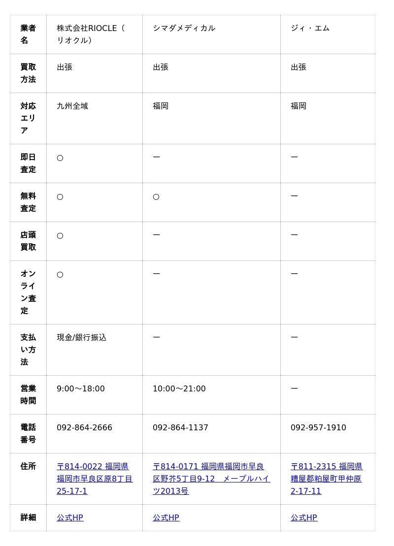 福岡には、医療機器を専門に扱う買取業者も多く、それぞれが専門性の高いサービスを提供しています。
