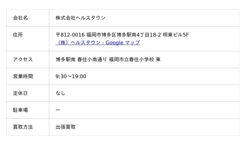 ヘルスタウンは、福岡県を拠点に中古医療機器の買取と販売を行う業者です。主に、パワーヘルス、ヘルストロン、リブマックスなどの高圧電位治療器や交流電気治療器を取り扱っています。