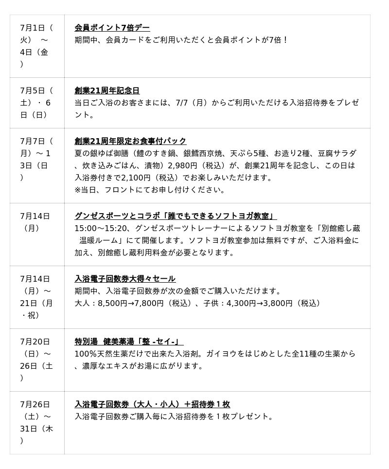 ■つかしん天然温泉「湯の華廊」利用料金(税込)について