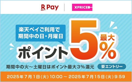 楽天ペイご利用で期間中の日・月曜日はポイント最大5%還元!