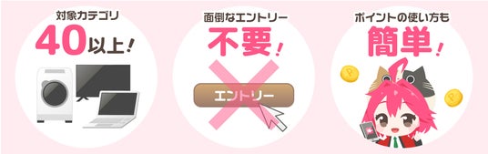 人気のエアコン、TV、冷蔵庫、洗濯機などもポイントバックの対象になります。