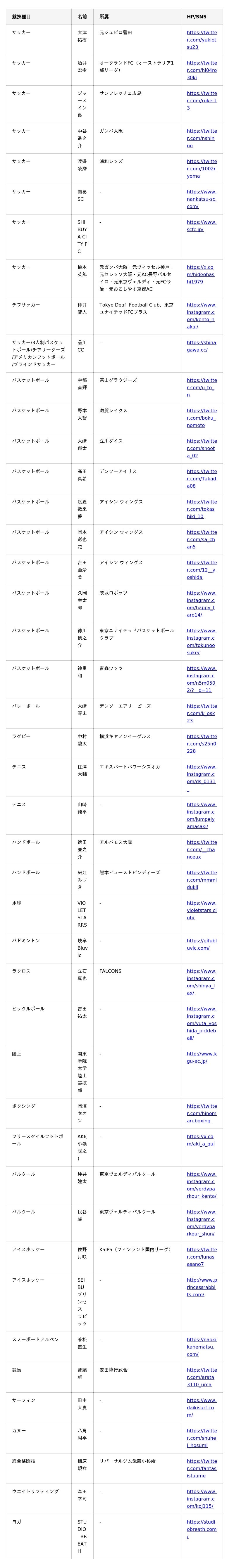 <BASE UP SPORTS サプライヤー契約一覧(現時点)>