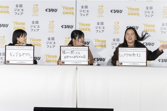 「ジビエを食べる際に注意しなければいけないことは?」という問題に田辺さんは「しっかり加熱すること」と回答し、見事正解。「時代を読めている」と喜ぶ田辺さんに「読めてないのは空気だけだね」とあんりさんがコメントし、会場を盛り上げました。その他にもジビエが保湿クリームなど、料理以外にも使われていることを知った田辺さんは「ジビエが生活の一部になってきている」と驚きました。