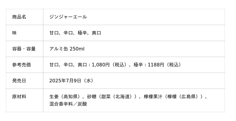 孝芳堂株式会社(本社:東京都千代田区、代表取締役:城垣 誠朗)は、星付きレストランをはじめ全国60店舗以上で愛されるクラフトジンジャーエールを、缶内の生姜スライスで熟成させる革新的なRTD(Ready to Drink)飲料として商品化し、2025年7月9日(水)に新発売いたします。
