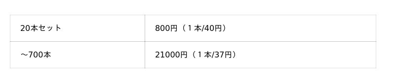 ※上記以上の数量ご希望の場合はご相談ください。全て紙個包装込みの値段になります。