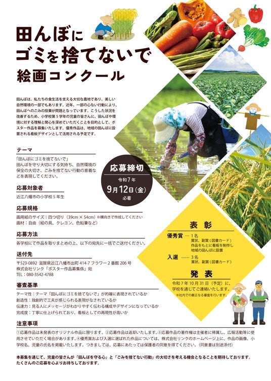 滋賀県では、小学5年生を対象に田んぼの仕組みや環境問題について学ぶ授業が行われています。この年齢は、田んぼや自然環境の大切さを深く理解し始める時期であり、ポスター制作を通じて自分たちの意見や想いを表現することで、環境保護への意識を高めることが期待できます。また、プロジェクトは株式会社リンクの本社所在地である滋賀県からスタートし、将来的にはこの取り組みを市外、県外へと拡大していくことを目指します。
