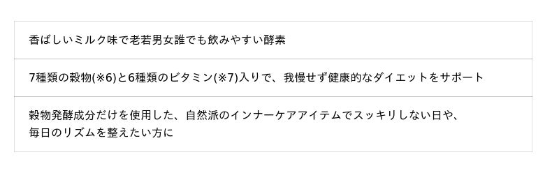 (※6)大麦、玄米、大豆、ソルガム、オーツ麦、黒豆、黒米 (※7)ビタミンB1、ビタミンB2、ナイアシン、ビタミンB6、ビタミンB12、ビタミンC