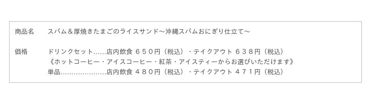 塩味の効いた肉厚なスパムと、しっかりとした甘さにかつお節のうま味が効いた厚焼きたまごをライスパテで挟みました。