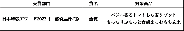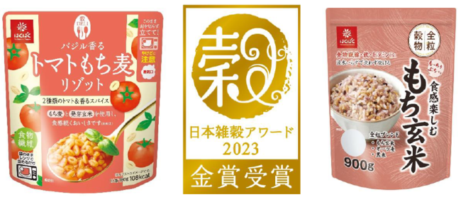 穀物のリーディングカンパニー株式会社はくばく(本社:山梨県中央市、代表取締役社長:長澤 重俊)は、一般社団法人日本雑穀協会が主催する「日本雑穀アワード2023《一般食品部門》」にて、『バジル香るトマトもち麦リゾット』『もっちりぷちっと食感楽しむもち玄米』の2品が“金賞”を受賞いたしました。