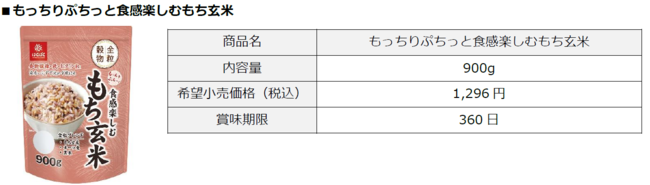 「玄米の食感が苦手」という方にも食べていただけるよう、もち玄米を配合し、もっちりした食感にこだわっています。冷めてももっちりなので、おにぎりやお弁当にもぴったりです。たっぷり入った大容量の900gタイプ。保管に便利なチャック付きです。