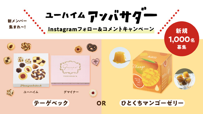 株式会社ユーハイム(本社:神戸市中央区港島中町7-7-4 代表取締役社長:河本英雄 以下、ユーハイム)は、お菓子を通じてファンとの交流を図ることを目的とし、総勢4,000名のアンバサダーを対象とした「ユーハイムアンバサダーキャンペーン」を開催いたします。 今回は、日本出店100周年を迎えた「ユーハイム」&ドイツの老舗ブランド「Gmeiner(グマイナー)」の定番ビスケットと、ユーハイムの季節限定ゼリーからお選びいただけます。また、一緒にユーハイムのお菓子の魅力を発信していただける、新たなアンバサダーを1,000名募集します。みなさまと素敵なお菓子時間を共有できることを楽しみにしています。