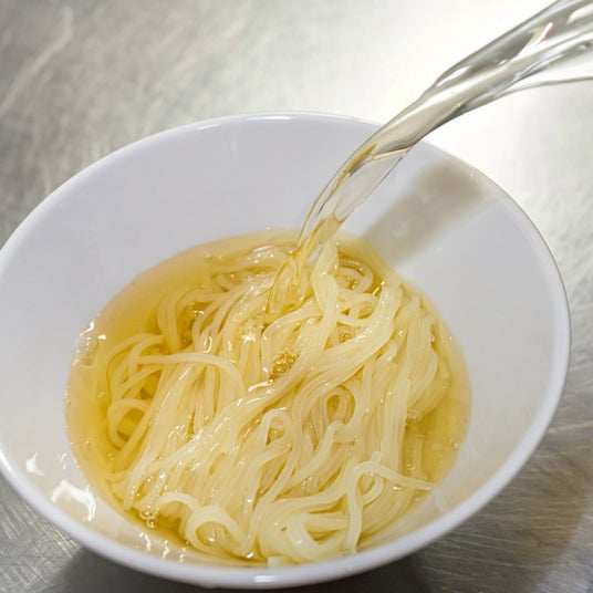 数百回にも及ぶ試食会から生まれた【特製スープ】数百回にも及ぶ試食会の結果、酸味を抑え、鶏出汁の旨味をしっかりと味わえる冷麺スープに仕上がっている。