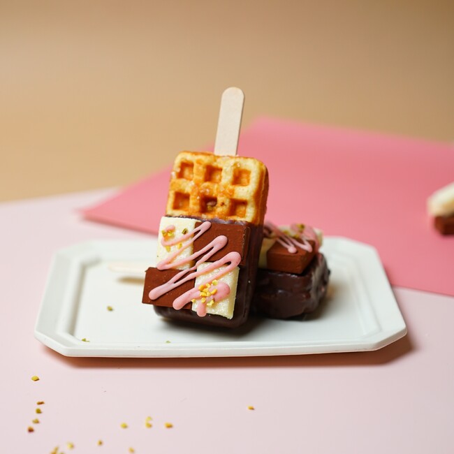 今回のポップアップストアでは、生チョコワッフルが入ったバレンタインBOX【2本セット/4本セット】を展開いたします。