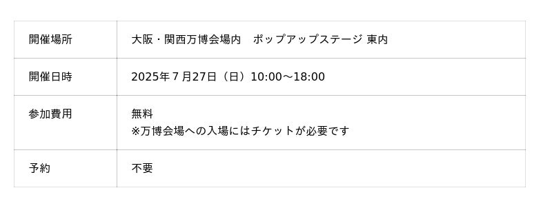 井村屋グループ株式会社(本社:三重県津市高茶屋七丁目1番1号、社長:大西 安樹)は、大阪・関西万博のポップアップステージ 東内において一日限りのイベント「あずき“COOL”Bar」を7月27日(日)に開催します。