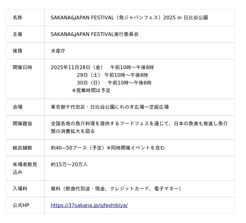 in 日比谷公園」(主催・SAKANA&JAPAN FESTIVAL実行委員会)が2025年11月28日(金)~