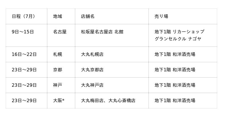 「スパークリングワインフェア」は、名古屋、札幌、京都、大阪、神戸の全国5都市にある大丸松坂屋百貨店各店舗で、1週間ずつ開催されます。各地のワイン愛好家や一般のお客様に、スパークリングワインの多彩な魅力をお届けするイベントです。