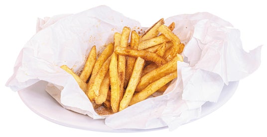 【わさビーフポテト】?商品特徴:わさビーフ風味のパウダーをまぶし たフライドポテトです。