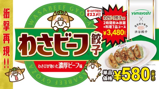 山芳製菓株式会社(本社:埼玉県川口市、代表取締役社長:加田 敏)は、株式会社MPキッチンホールディングス(本社:東京都渋谷区、代表取締役:村上 竹彦)傘下の株式会社エムピーキッチンが運営する「薄皮餃子専門 渋谷餃子」より、期間限定で「わさビーフ餃子」をはじめとするコラボ商品を2025年7月8日(火)より発売いたします。