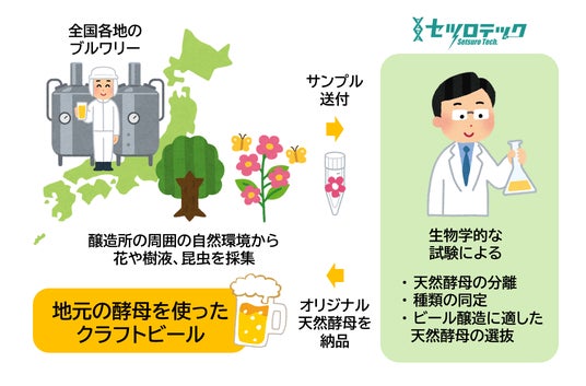 このたび、徳島大学発のスタートアップである株式会社セツロテック(本社:徳島県徳島市、代表取締役:竹澤慎一郎、以下「セツロテック」)は、クラフトビール醸造所向けに、周囲の自然環境からビールが醸造可能な天然酵母を採取できる「ビール酵母スクリーニングサービス」を発売いたします。セツロテックは、これまで、地元のブルワリーである株式会社阿波麦酒と協働し、徳島市のシンボル・眉山に咲く花から採取した天然酵母を用いて、クラフトビール「アザレアエール ~びざんの酵母~」を共同開発してきました。クラウドファンディングでも多くの方々にご支援いただいたこのプロジェクトをさらに発展させ、ビール醸造所の周囲の自然環境からサンプルを集めて送付するだけで、手軽にオリジナル天然酵母を入手できるサービスを提供いたします。今後、セツロテックは、科学的な知見やノウハウが提供可能な大学発スタートアップならではの立ち位置を活かし、地域活性化につながる新商品開発を支援することを目指します。