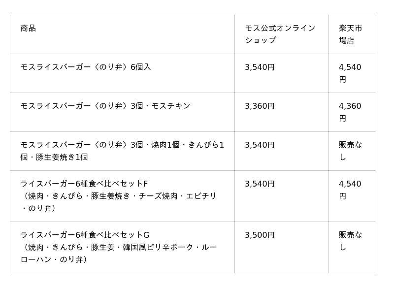 発売を記念して、「モス公式オンラインショップ~Life with MOS~」では、期間中に「モスライス バーガー〈のり弁〉」を含む商品(上記表の5種類の商品)を購入すると送料無料になるキャンペーンを実施いたします。