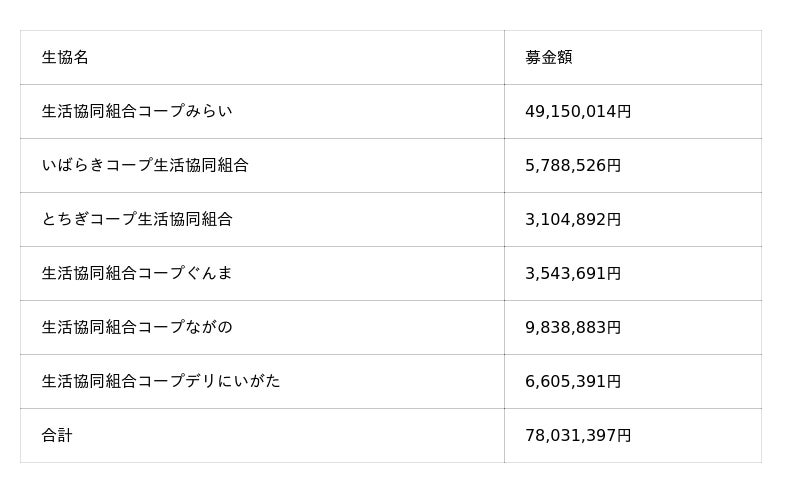 会員生協の募金額